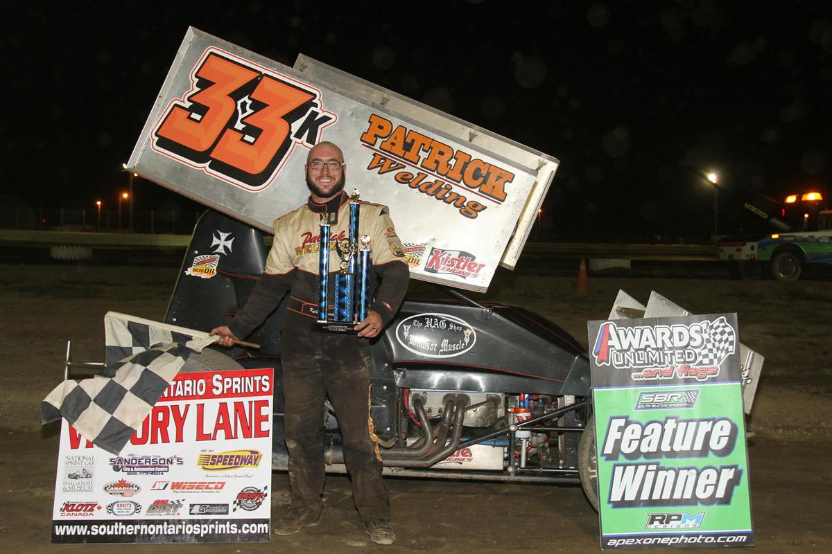 Kyle Patrick lived up to his nickname by stormed around the leaders through turns three and four on lap 17 and went on to pick up his second career Southern Ontario Sprints feature victory on his home track.