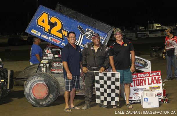 Wilson and defending Southern Ontario Sprints champion, Glenn Styres led the field to the green flag in the 25 lap main event. The long-time rivals raced hard on the opening lap before Styres overdrove turn four and brought out the first and only caution of the race.