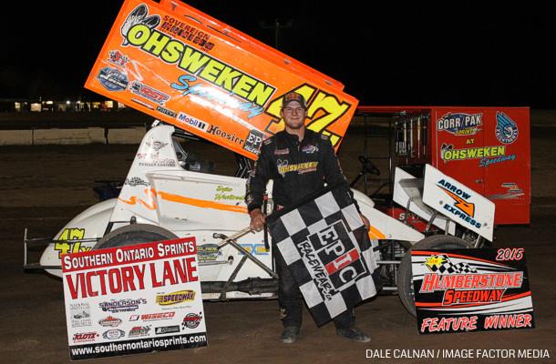 By Greg Calnan (Port Colborne, Ontario) – When Dylan Westbrook scored his first career 360 sprint car win on July 2nd at South Buxton Raceway with the Southern Ontario Sprints few could have imagined the rookie driver would be undefeated one month later. The Oakland, Ontario native captured his fourth straight win on Sunday night at Humberstone Speedway in Port Colborne, Ontario.